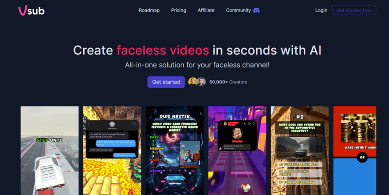 Vsub is another all-in-one solution that enables anybody to create high-class faceless videos. In case you’re tired of the endless struggle to create engaging video content for your social media channels, this tool is for you.