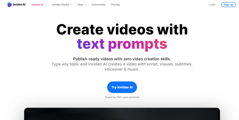 Last on this list of AI faceless video makers is invideo AI. Using this tool, you can convert your video idea or piece of text into a polished and publish-ready video with just a few keystrokes.