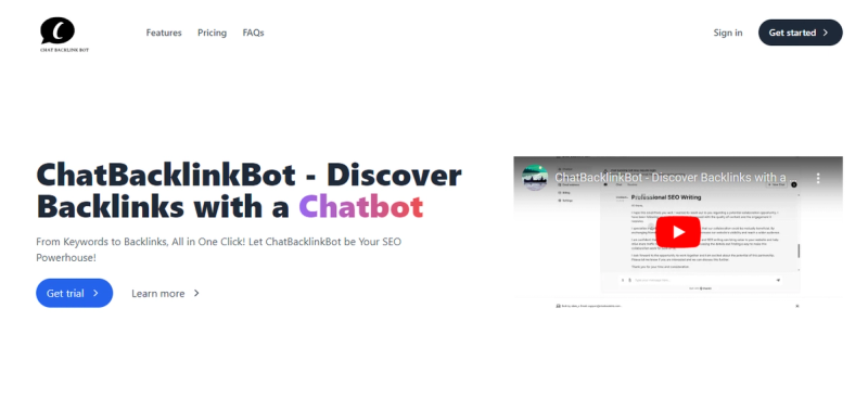 If you need another AI tool for link building, ChatBacklinkBot may interest you. It makes the process easier by using web crawling technology alongside natural language processing (NLP).