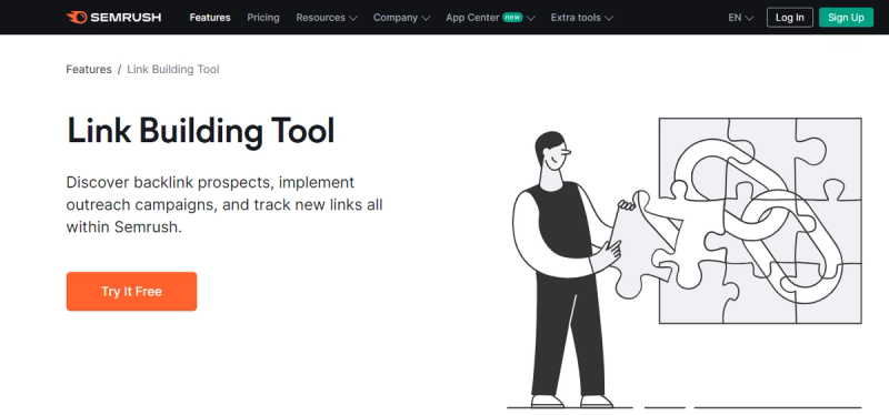 If you want to enhance your link building efforts, Semrush's advanced link building tool is an outstanding solution. As the first tool in our list, Semrush simplifies every phase of the link building process, from finding prospects to conducting outreach campaigns.